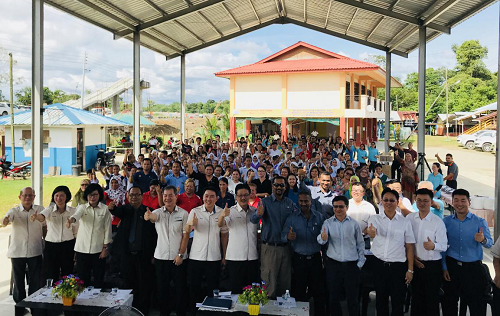 中国水电援建的民都鲁市郊SK.Sg.Kem Batu 18小学的工程落成仪式现场。